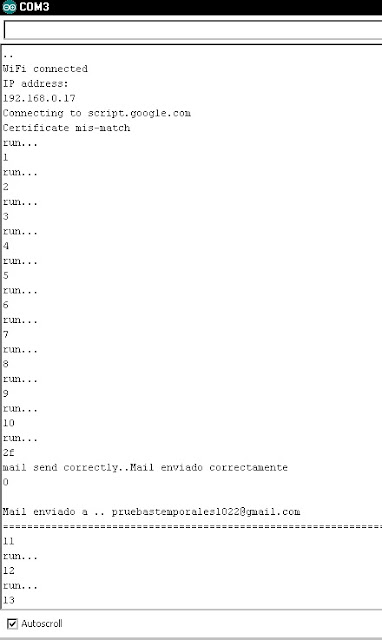 Reutilizando la conexión establecida con google script app y google spreadsheets, se han realizado pruebas de envió de correo electrónicos aprovechando los servicios de google y ESP8266.